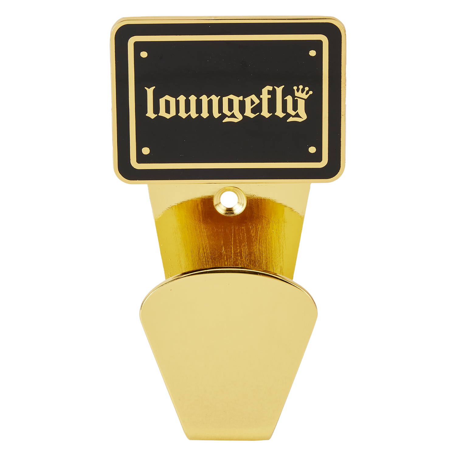 Give your favorite Loungefly bag a stylish lift with our Loungefly Gold Metal Wall Hook. This wall accessory features the signature Loungefly plaque and sturdy gold-colored metal backing and hook. It’s perfect for displaying and organizing Loungefly bags and apparel, effortlessly.