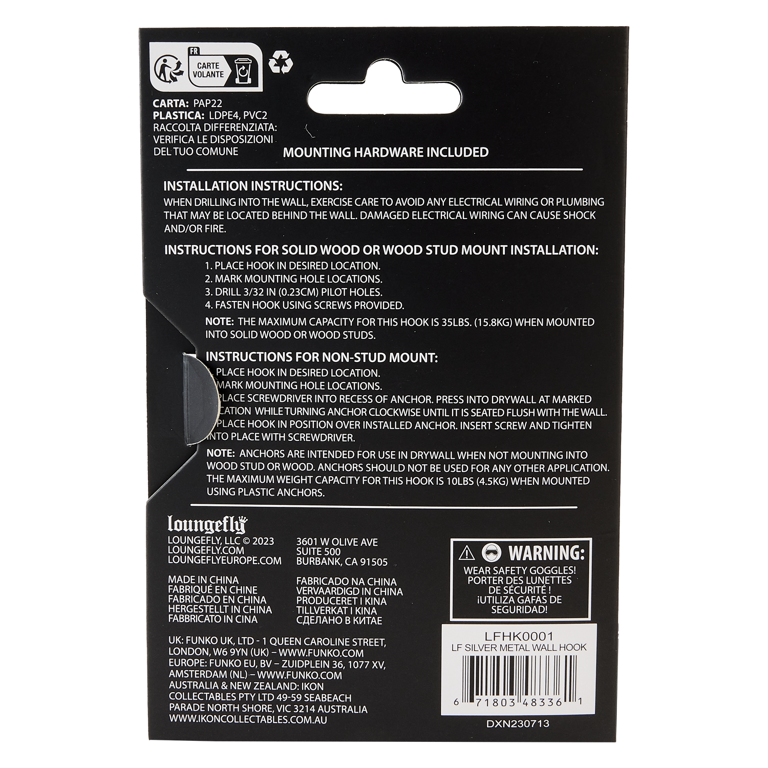 Give your favorite Loungefly bag a stylish lift with our Loungefly Silver Metal Wall Hook. This wall accessory features the signature Loungefly plaque and sturdy silver-colored metal backing and hook. It’s perfect for displaying and organizing Loungefly bags and apparel, effortlessly.