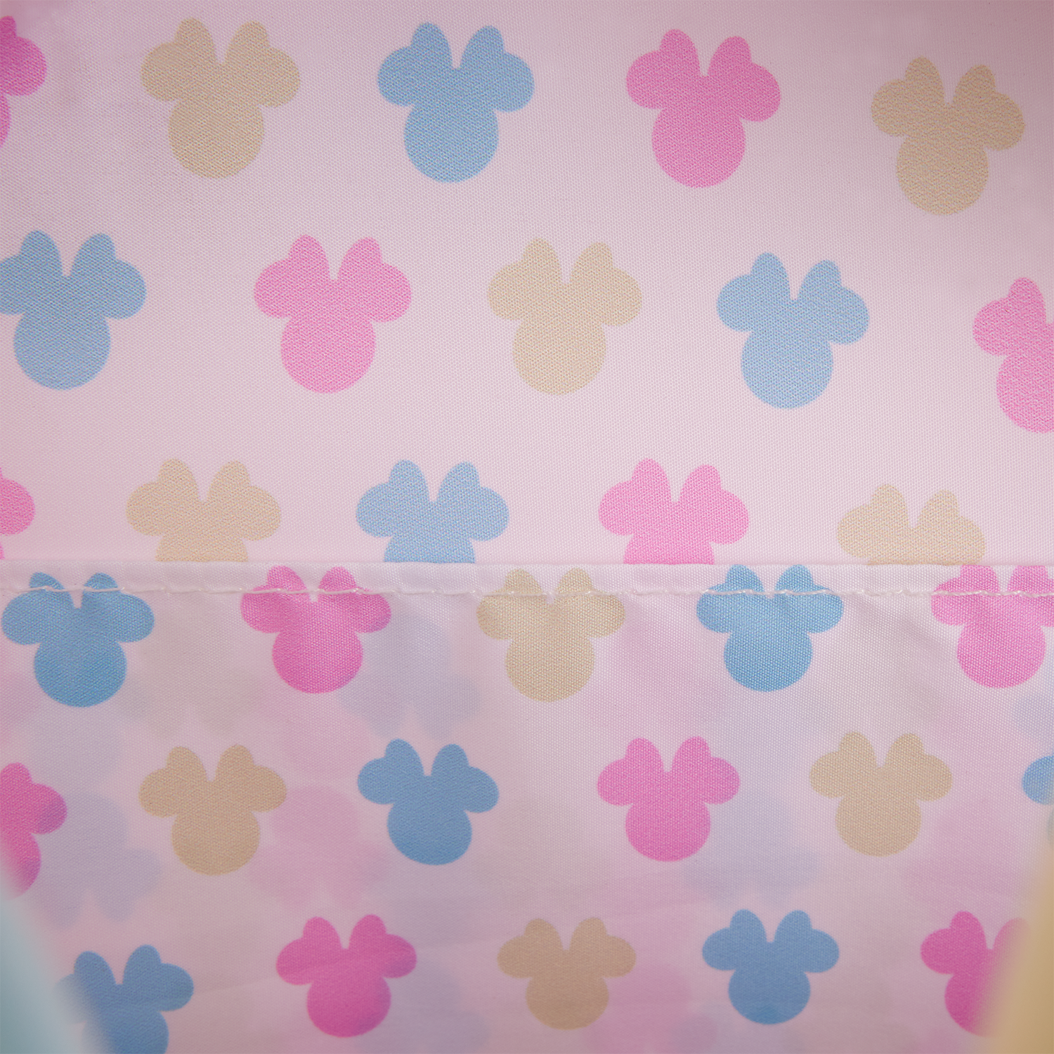 This pink mini backpack features a 3D-molded Minnie Mouse head as the front pocket. Our fav fashionista grins out from the front of the bag! Her tie-dye pattern consists of perfect pastel blues, pinks, and yellows. White trim and straps bring the whole look together.