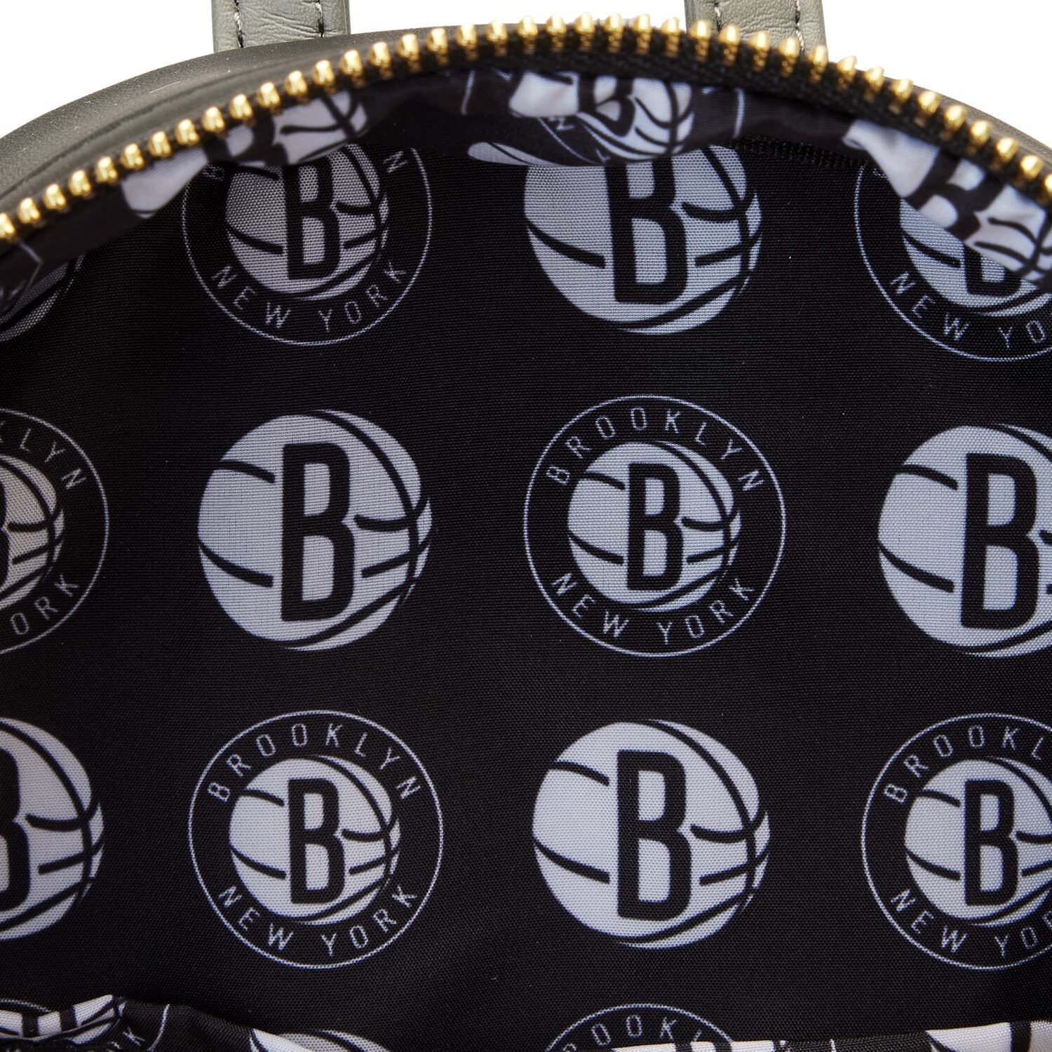 The Loungefly NBA Brooklyn Nets Patch Icons Mini Backpack is made of vegan leather (polyurethane). Bag has adjustable shoulder straps and sturdy metal hardware. Additional features include applique, debossed, and printed details. Take note of the coordinating inside lining.